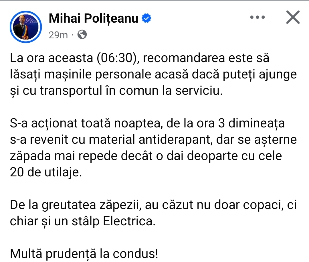 Administrația locală are obligația nu doar să comunice, ci să livreze rezultate concrete. O ninsoare serioasă nu ar trebui să transforme orașul într-un spațiu blocat și vulnerabil.